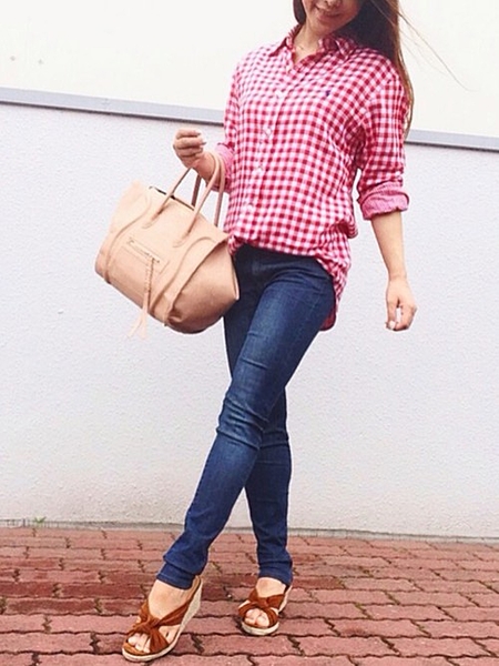 一見ラフになりすぎてしまいそうなコーデですが、ギンガムチェックシャツできちんと感をプラス◎