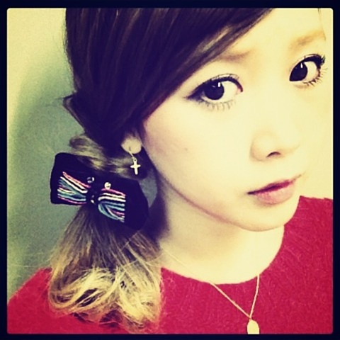 リボンで留めるヘアアレンジで、女の子さをだしてくれ