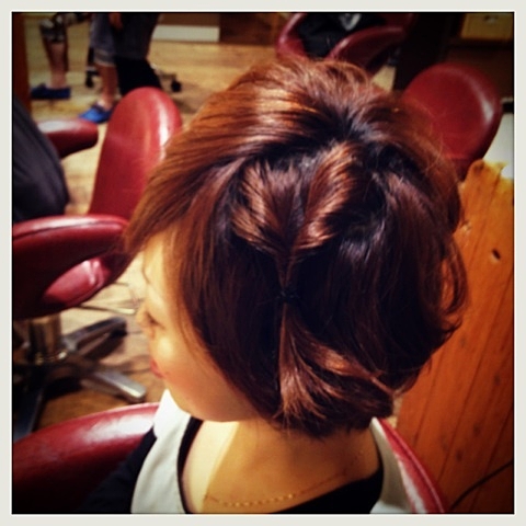 ヘアピンとミニバレッタで止め、反対側のおろしておいた方の髪の内側にヘアスプレーして、ボリュームを出して完成!ショートボブでも簡単なアレンジですね◎