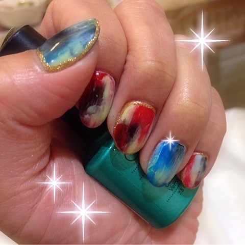 油絵ネイルはマーブルっぽくすると