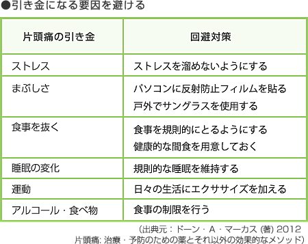 頭痛を引き起こす要因の主な一覧です。