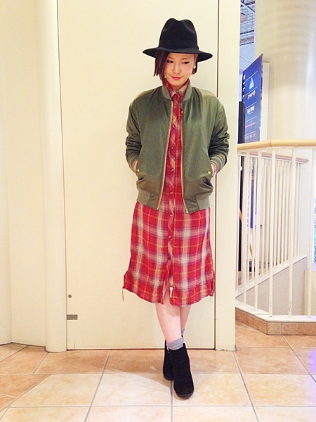 チェックシャツはMA-1とも