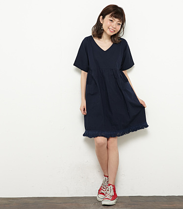 ワイドスリーブラインブルーデニムワンピース・全2色・b44525