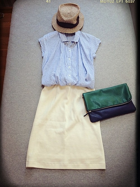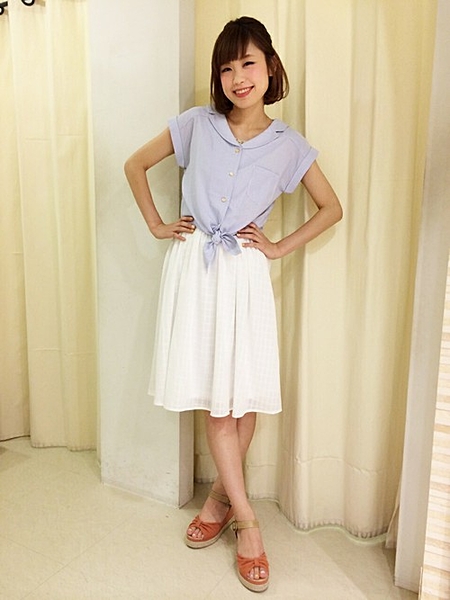 夏感たっぷりなブルーのストライプは、白ボトムスで爽やかに味付け♩
