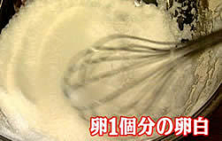 卵一個分の卵白を、メレンゲ状になるまでかき混ぜる