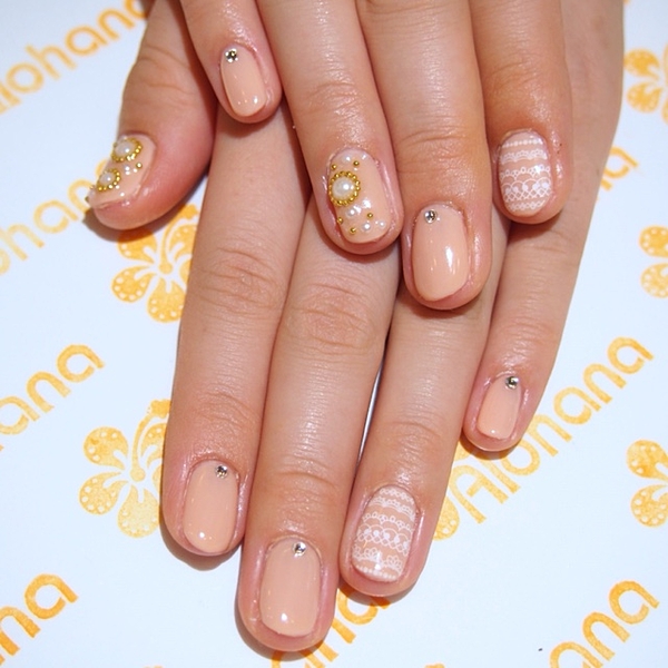 ベージュのワンカラーにレースのペイント☆ブライダルでも出来そうな上品ネイル☆☆ http://t.co/cQfzlkmbEn