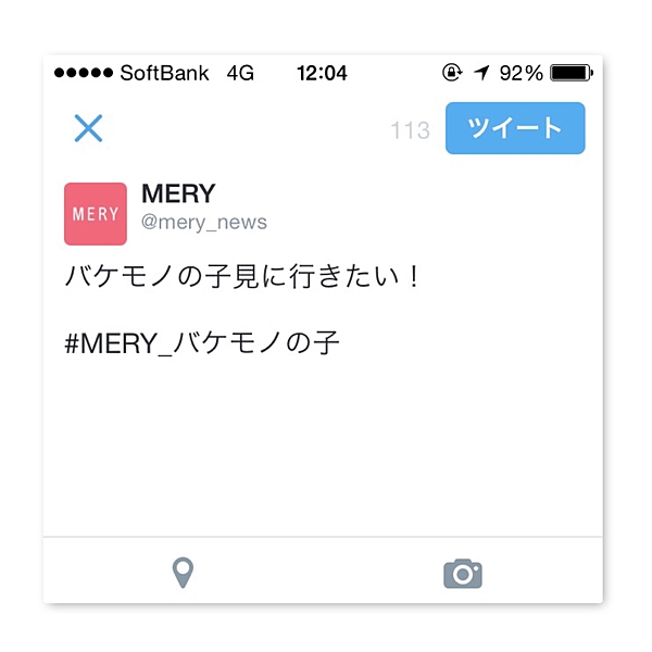 ■②「#MERY_バケモノの子」でツイート