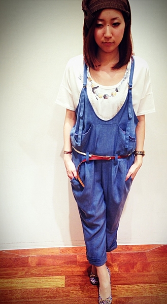 脚をみせて健康的オーバーオールスタイル!