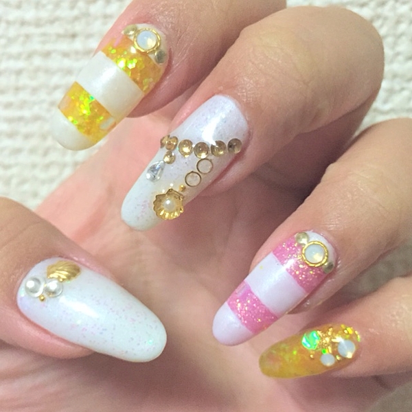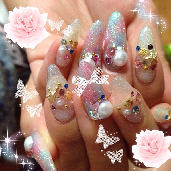 最近何だか忙しい(T^T) 夏のネイルに変えました(*´∀`)ノ 初5色ネイル(*^^*)♪ キラキラ、ちょっとセーラームーン風?!(笑)(笑) #ネイル #スカルプネイル #夏ネイル #キラキラネイル http://t.co/bn0wB4XwHw