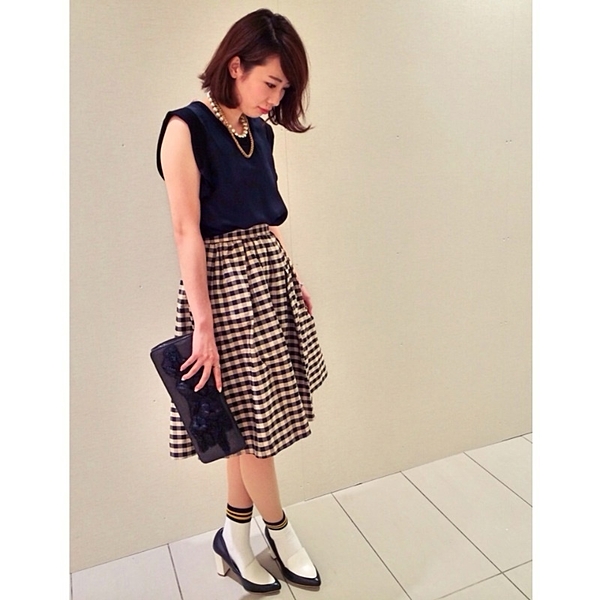 パンプスやビジューネックレスを合わせてエレガントな着こなしがおすすめ♪