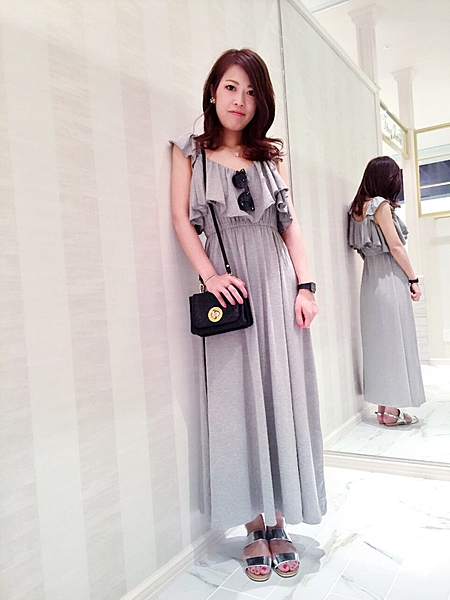 おしゃれなワンピスタイルにも、黒でコーディネートを統一。