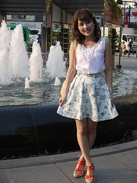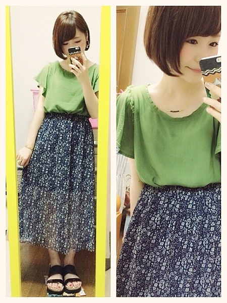 ながめスカートの場合はとくにウエストを高めにしてスッキリした印象にしましょ◎