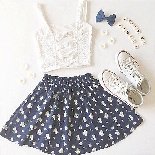 ミニより少し長めの膝丈スカートは1:1.5が◎スカートを少し長くする事でよりお嬢様っぽくなります。