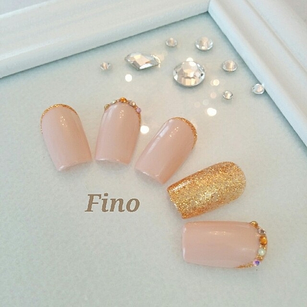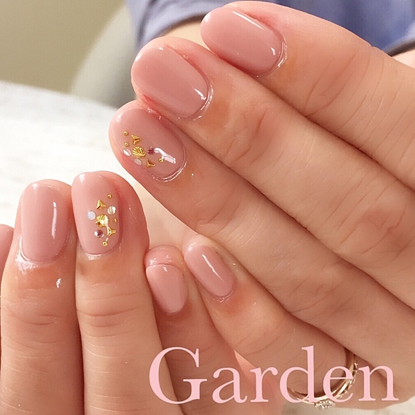 煌びやかなストーンもベージュピンクなら落ち着いて見えますね。