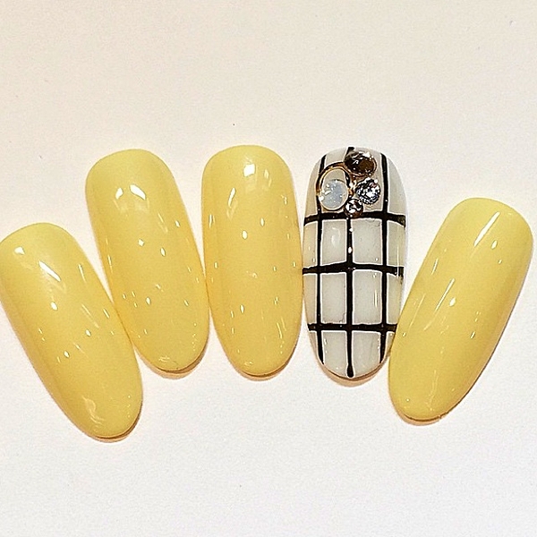 薬指のパステルイエローとストーンがちょっとしたアクセントで素敵です。