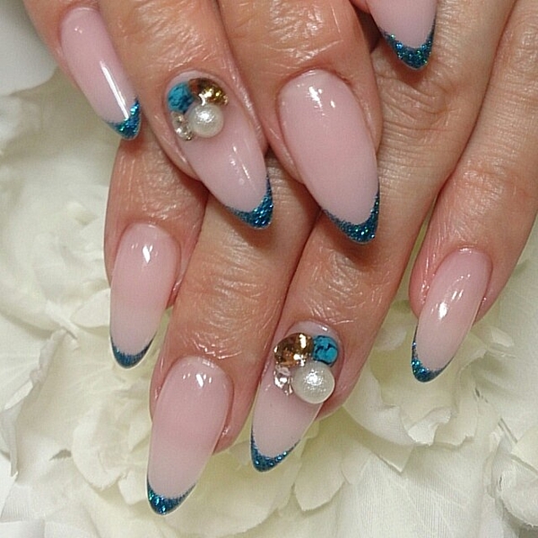一本ラメを重ね塗りしたらあとは囲みネイルで控えめに♪