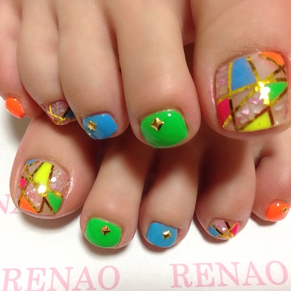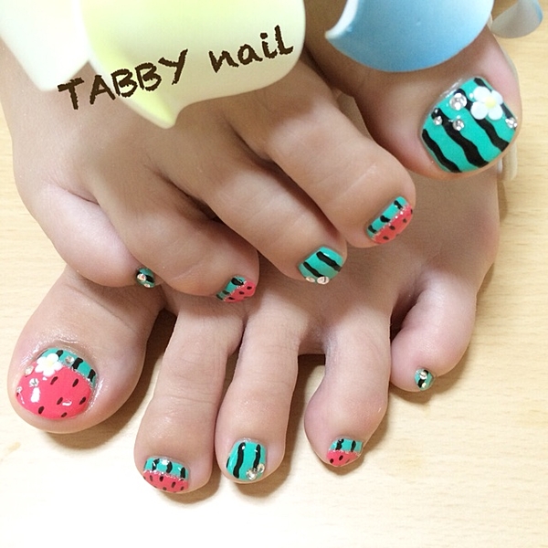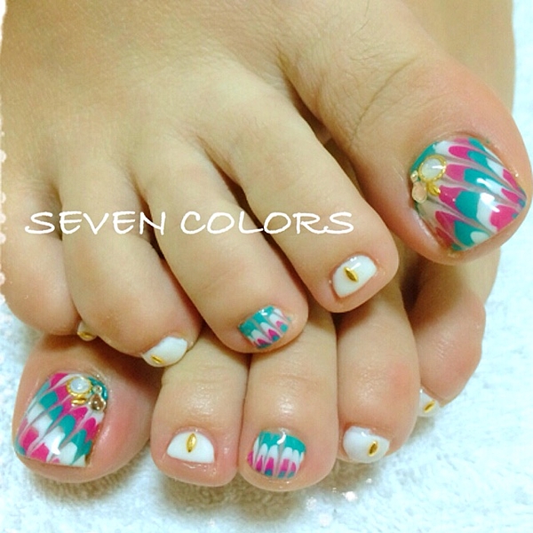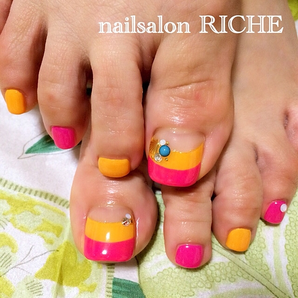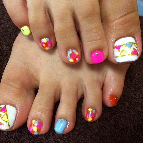 フットネイルを派手なデザインにして夏を楽しみたい♪