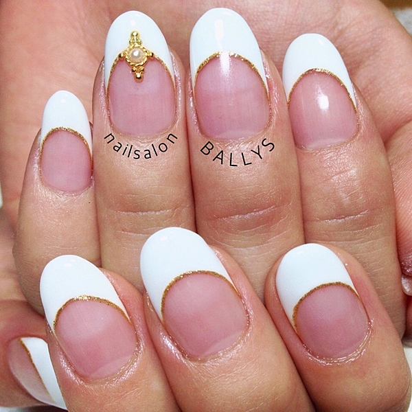 基本の白ネイルもゴールドのラメを加えてゴージャスに!