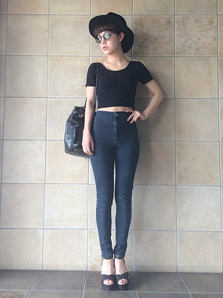 細く見せたい為に、全身黒でコーディネートすると