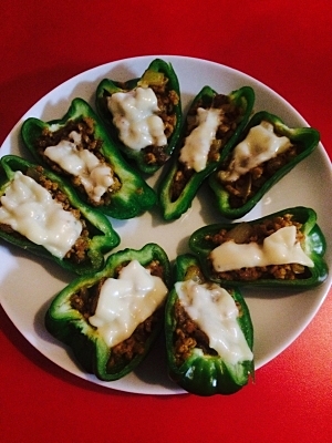 氷こんにゃく入り!ピーマンの肉詰めカレー味