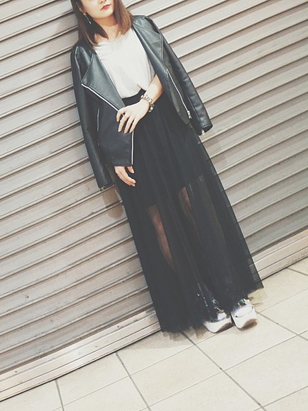 黒のチュール素材なら、レディな雰囲気に。