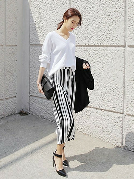 ストライプのガウチョパンツなら