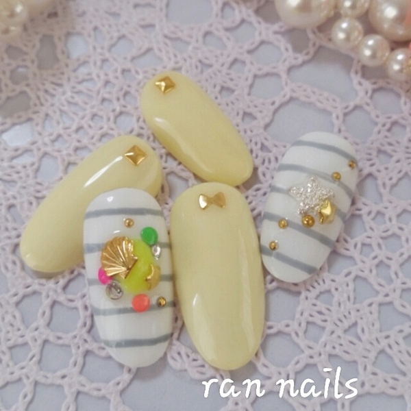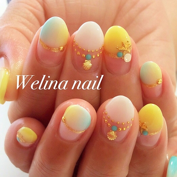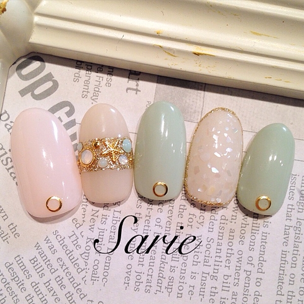 あえてブルーを使わない♡夏にぴったりのシェルネイル