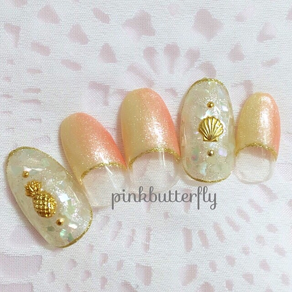 シェルのキラキラ感は、涼しそうで夏にぴったりだし、ラメとは違った輝きのネイルは海で映えます♪シェルパウダーをとじこめたデザインや、ストライプやボーダーにシェルパーツをのせたり・・いろいろ楽しめますね♡この夏やりたシェルネイルのいろいろデザインを集めてみました♡
