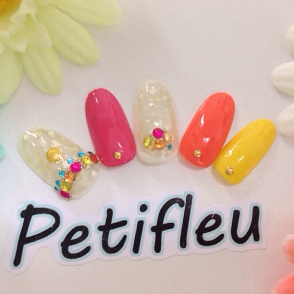 こんにちは\( ´ω` )/ お客様ネイルのご紹介です♡ パステルネオンカラーを使い夏らしさを演出し、ターコイズやシェルなどのパーツをふんだんに使ったサマーネイル(^ー^)ノ 是非参考にしてみて下さいね♡ http://t.co/cRglyscJIx