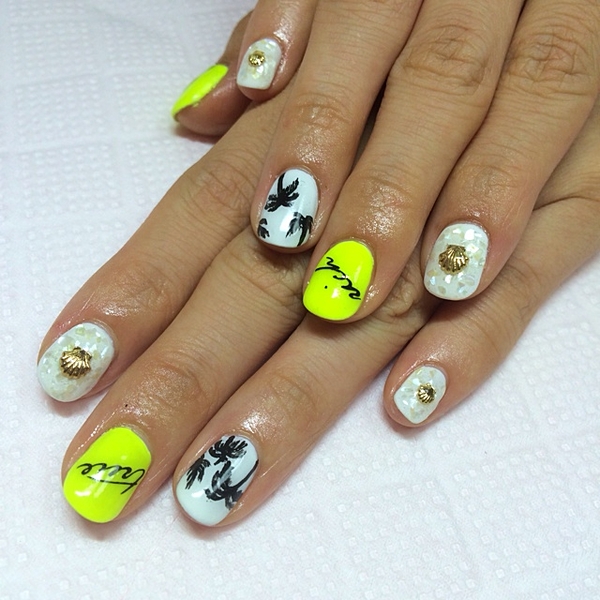 イエローとグリーンのネオンカラーが鮮やかなフレンチデザイン