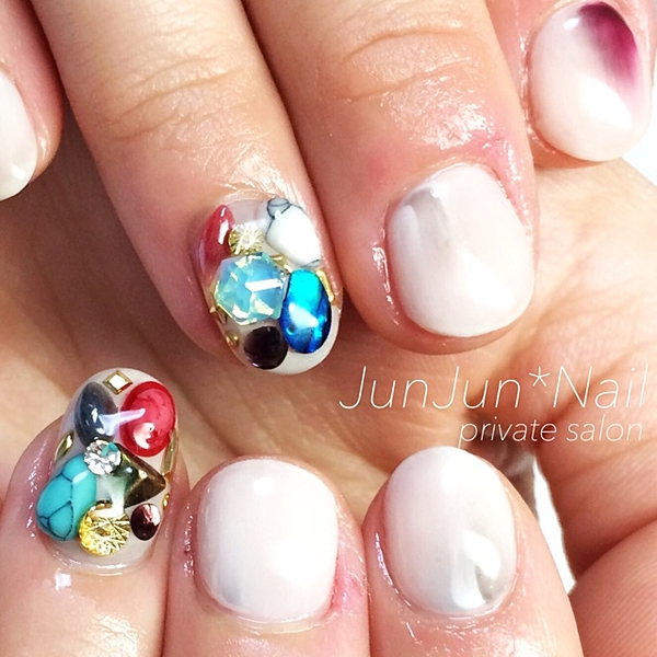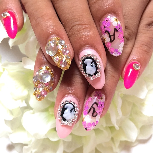 ネイルを3Dにして存在感のある大人可愛いネイルで目立っちゃいましょう!ネイルを3Dにするにはハートやお花を立体的に付けたり、大きめストーンを付けて立体的にしたり、いろいろ楽しめますね!自分なりのデコレーションにして大人可愛いネイルを作りたいですね♪