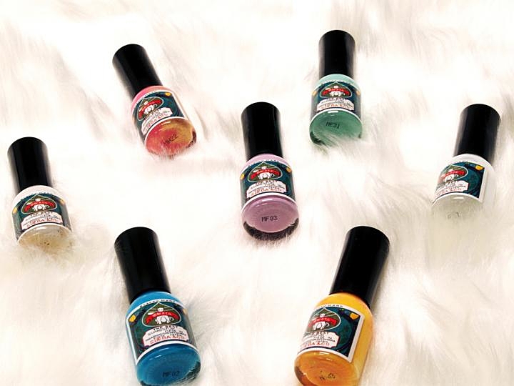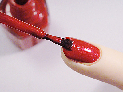 ラメ入りではないマニキュアを塗って、かわかないうちにティッシュで拭き取る。