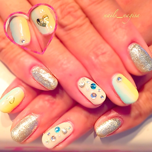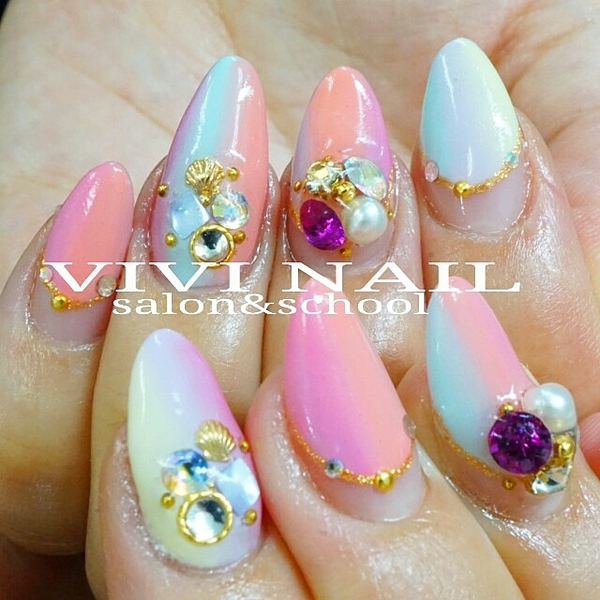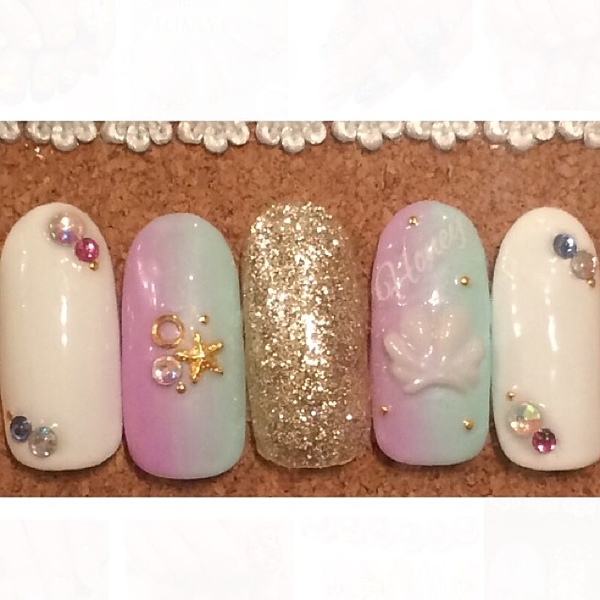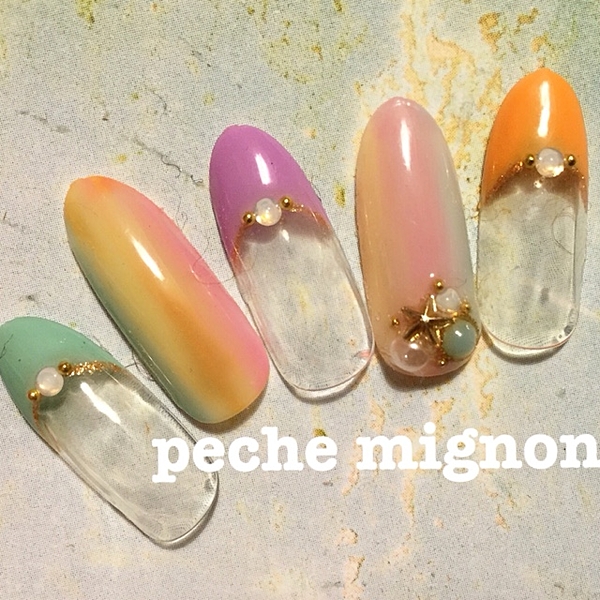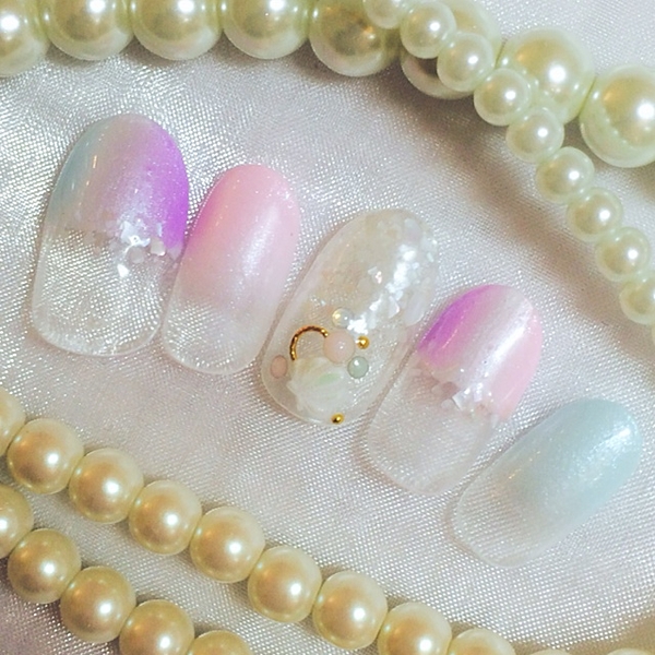 女の子らしいカラーのグラデーションに大きめのパールがとっても可愛い♡