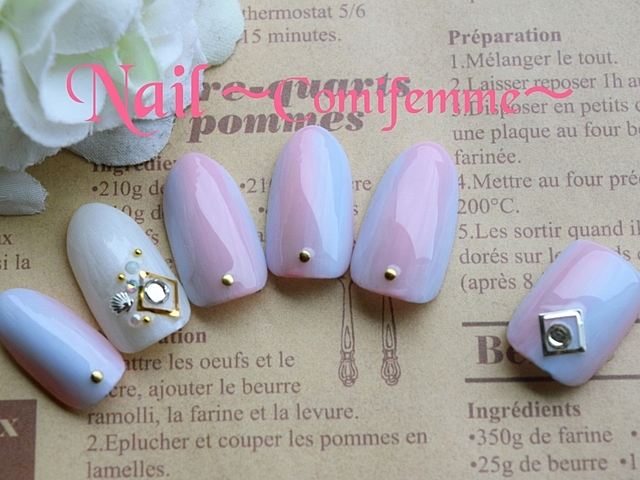 ホワイトとピンクの上品なグラデーションネイル。