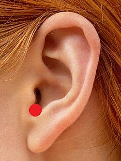 飢点は、過食を防ぐ耳のツボです。耳の穴の前、顔側のとがっている部分の下方のくぼみにあります。過剰な食欲を抑える効果があります。