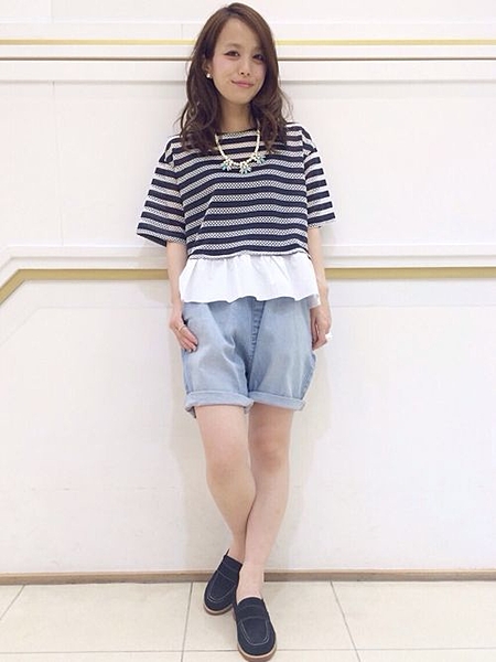 視線を上にスタイルアップ!ショートパンツ×大ぶりアクセサリー