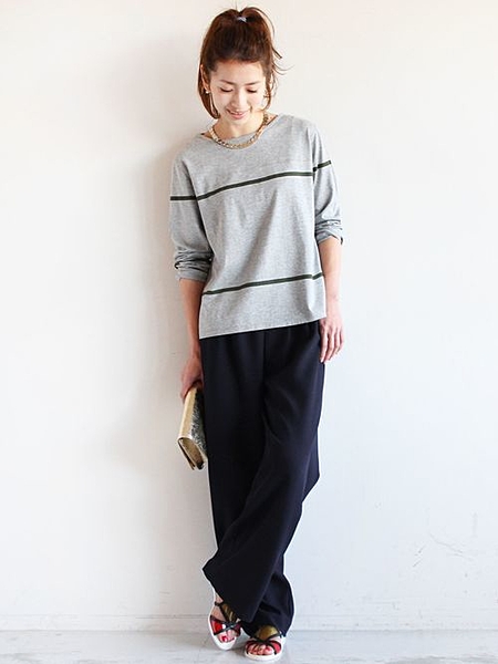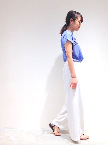 クロップド丈のワイドパンツは重たくなり過ぎずスッキリと着こなして頂けます。