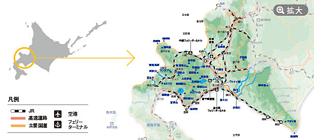 北海道経済の中心である札幌市を筆頭に、観光地として人気の高い小樽市、美しい景観が魅力のニセコやルスツといったスキーリゾート地など北海道の魅力がぎゅっとつまった観光エリア。