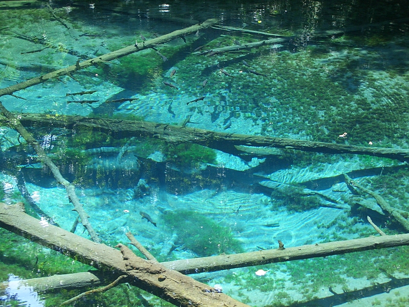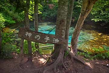 池水の透明度は高く水温が年間を通して8℃と低いため、池に沈んだ倒木が朽ちることなく水の底に横たわる姿がはっきり見ることが出来ます!