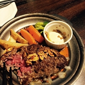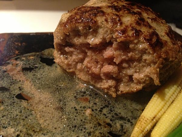 ハンバーグは鉄板に乗って、ジュージューと出てくる。