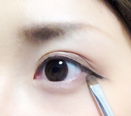 ここ最近のアイメークの主役といえば、目元を線でしっかり引き締めるアイラインですが、ツヤ感ヌーディメークの主役は、線でなく面を強調するアイシャドウ。