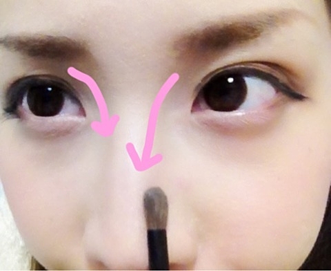 オレンジのアイシャドウやチークを眉にのせる。オレンジをのせておくことによって、外国人のようなふわふわ感のある眉を作ることが出来るよ。