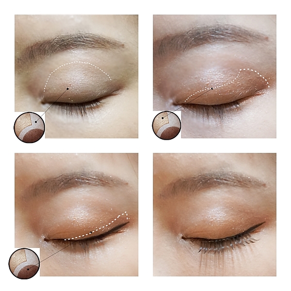 ③ 濃いブラウンのシャドーを目のキワ長めに塗り、