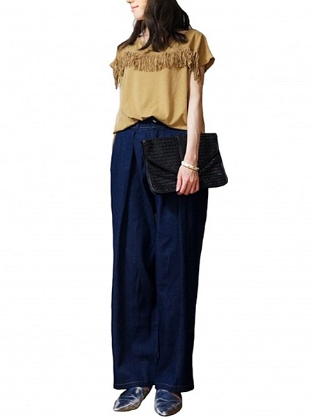 スッキリと着られるコンパクトなサイジングなので、ワイドパンツなどのボリュームボトムとも好バランスにマッチします。
