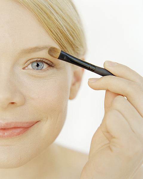 パウダーをブラシにとって眉の中央から眉頭に薄く影をつけることで、ハーフっぽい彫りの深い顔を演出することができます。