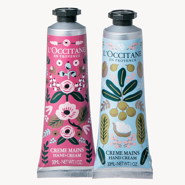 シア20%配合のハンドクリームは、シア&華やかなローズの香りの2種。もっちりと柔らかな手肌へ。