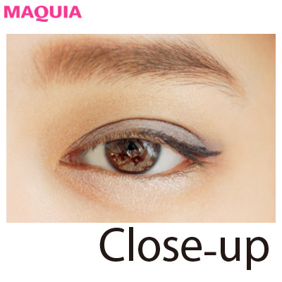 「MAQUIA」2月号では、メイクアップアーティストのイガリシノブさんがプチプラコスメを使ったメイクテクを公開。グレイッシュネイビーでクールな目元に!