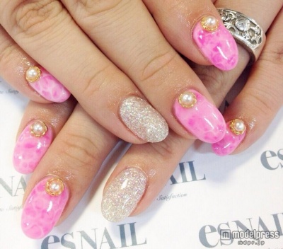 ピンクのドロップにパールをON。ポイントでラメを入れることで、キュートさの中にも華やかな印象を与えることが出来ます。