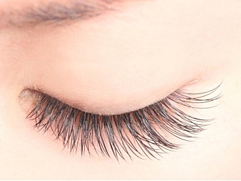 眉頭の位置を下げたら、次はロングラッシュのマスカラやツケマなどを使って、目頭のマツゲを伸ばします。この時、くるんと上向きにカールさせることも忘れずに。目頭のマツゲが上向きに長くなることによって、目の錯覚が生じ、先ほど少し下げて描いた眉頭との位置が、より近づいて見えるようになります。