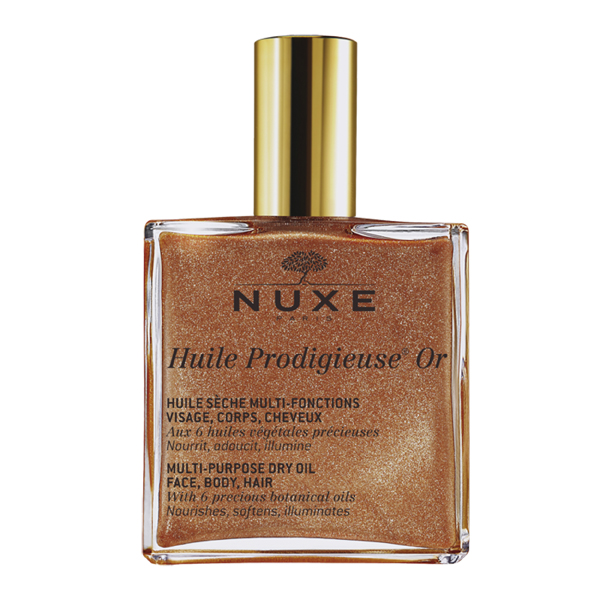 ニュクスのオイルは細かくて上品なゴールドでゴージャスな印象にしてくれます。保湿しながらもさらっとした使い心地でボディだけではなく、髪やチークにも使用出来ます。